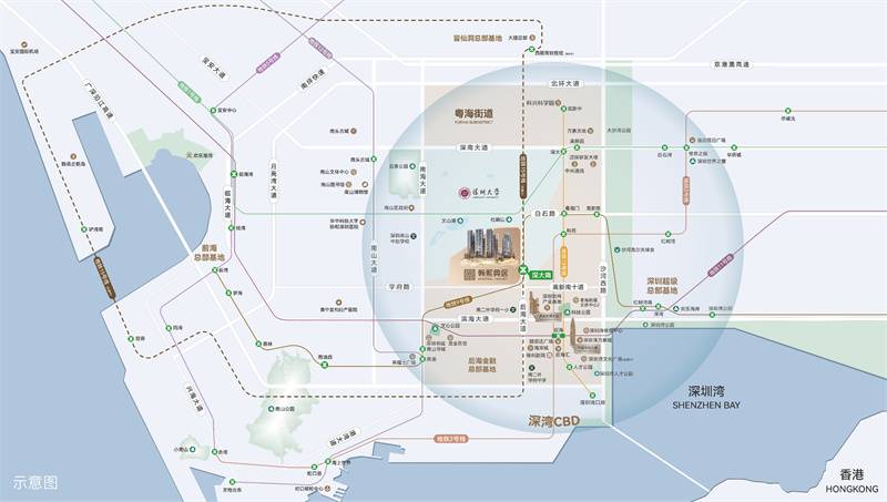翰熙典居占位深圳经济命脉滨海大道与南北科创主轴南海大道交汇处十字轴心。集萃城市区位、科创、人文、TOD四大中心源点。依托两大科技园、四大总部基地,集总部经济+全球科创中心价值,坐享区域发展利好。