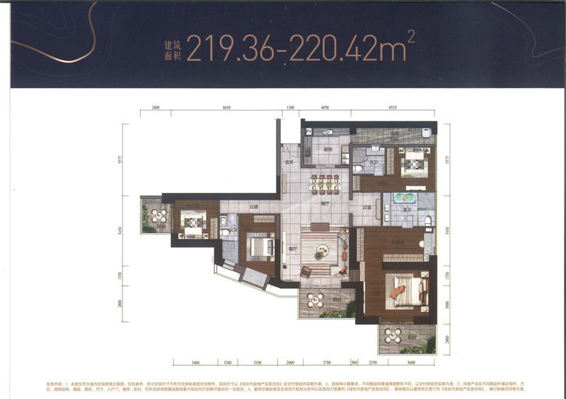 220㎡平层 4房2厅3卫 总价:960万-1400万